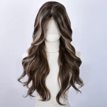 New Hot Smilco 26 Inch Long 13*3 Lace Brown Gradient Wavy Curly Daily Party Chemical Fiber Synthetic Wig SM9205M for Women