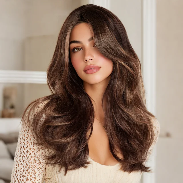 Luxurious 26 Inch Long Brown Body Wavy Lace Front Wig-natural Appearance, Heat-resistant Synthetic Hair, Density of 200% SM9843